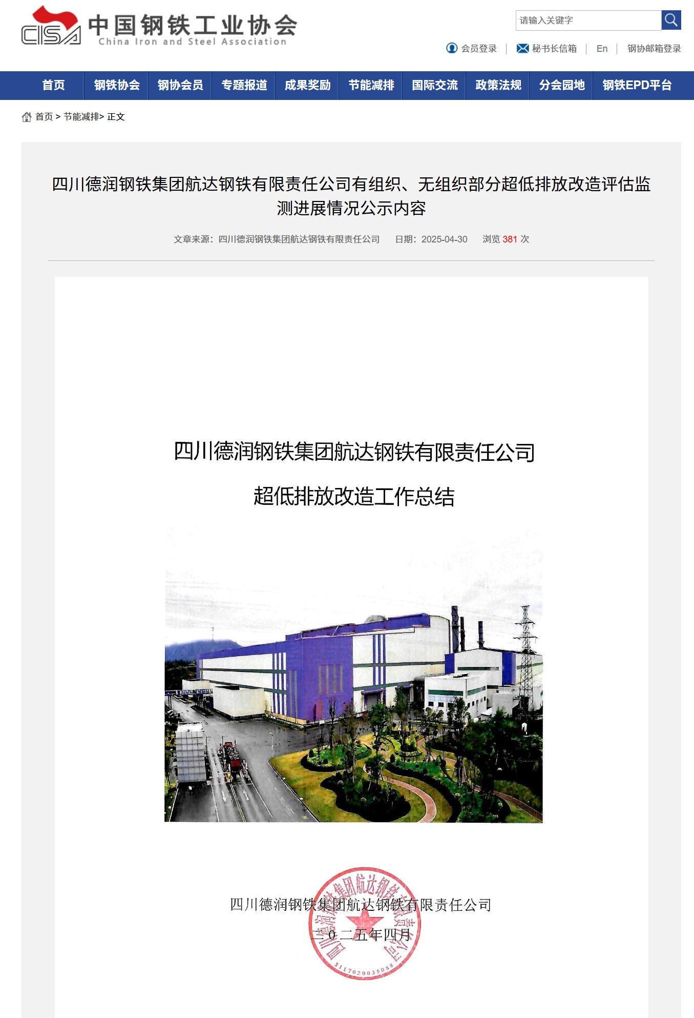4月30日,中國鋼鐵工業協會對四川德潤鋼鐵集團航達鋼鐵有限責任公司超低排放有組織、無組織改造評估監測進展情況進行公示,這標志著德潤航達鋼鐵在綠色制造、環保升級方面邁出了堅實的一步,實現了超低排放有組織、無組織改造目標,彰顯了公司堅定不移走生態優先、綠色發展道路的決心,對推動德潤航達鋼鐵綠色轉型、促進區域生態環境改善具有重要意義。