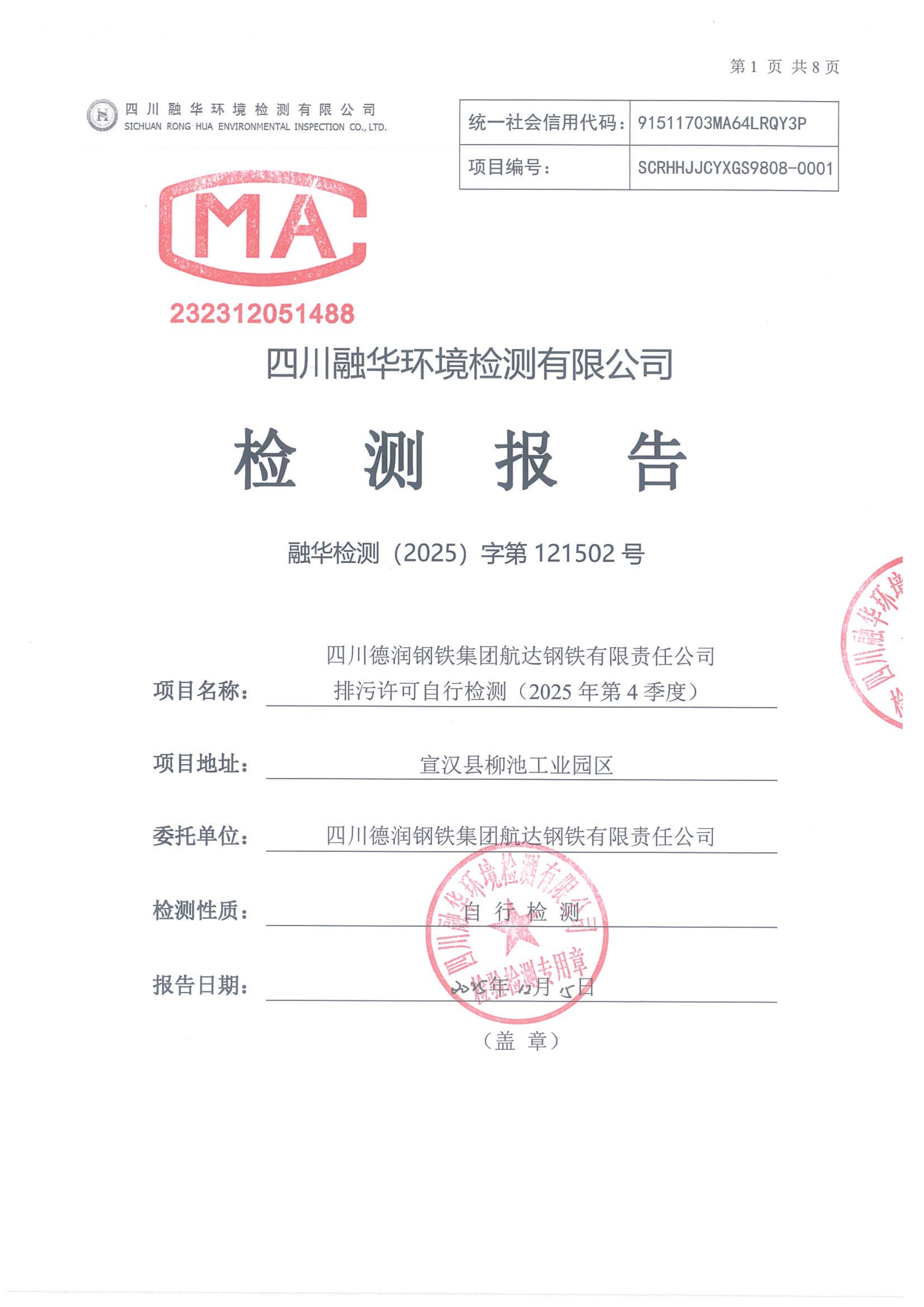 四川德潤鋼鐵集團航達鋼鐵有限責任公司(2025年4季度自行檢測)